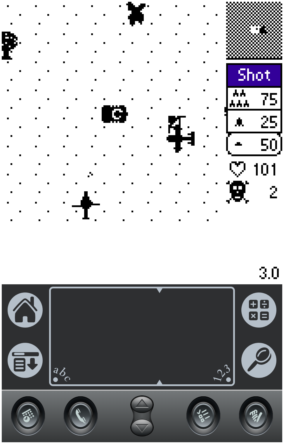 Riichi mahjong game. The score screen is garbled on English-language Palms, but gameplay is unaffected if you know the rules. Unfortunately it seems to restart the game whenever you switch to another app.